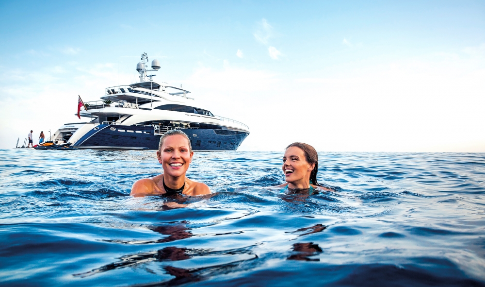 Getting clients to embrace a 40 metre semi-custom yacht from a builder renowned for production sports boats is a challenge. To capture a sense of timeless quality we organised and art directed a photoshoot in Cap Ferrat on the French Riviera.
